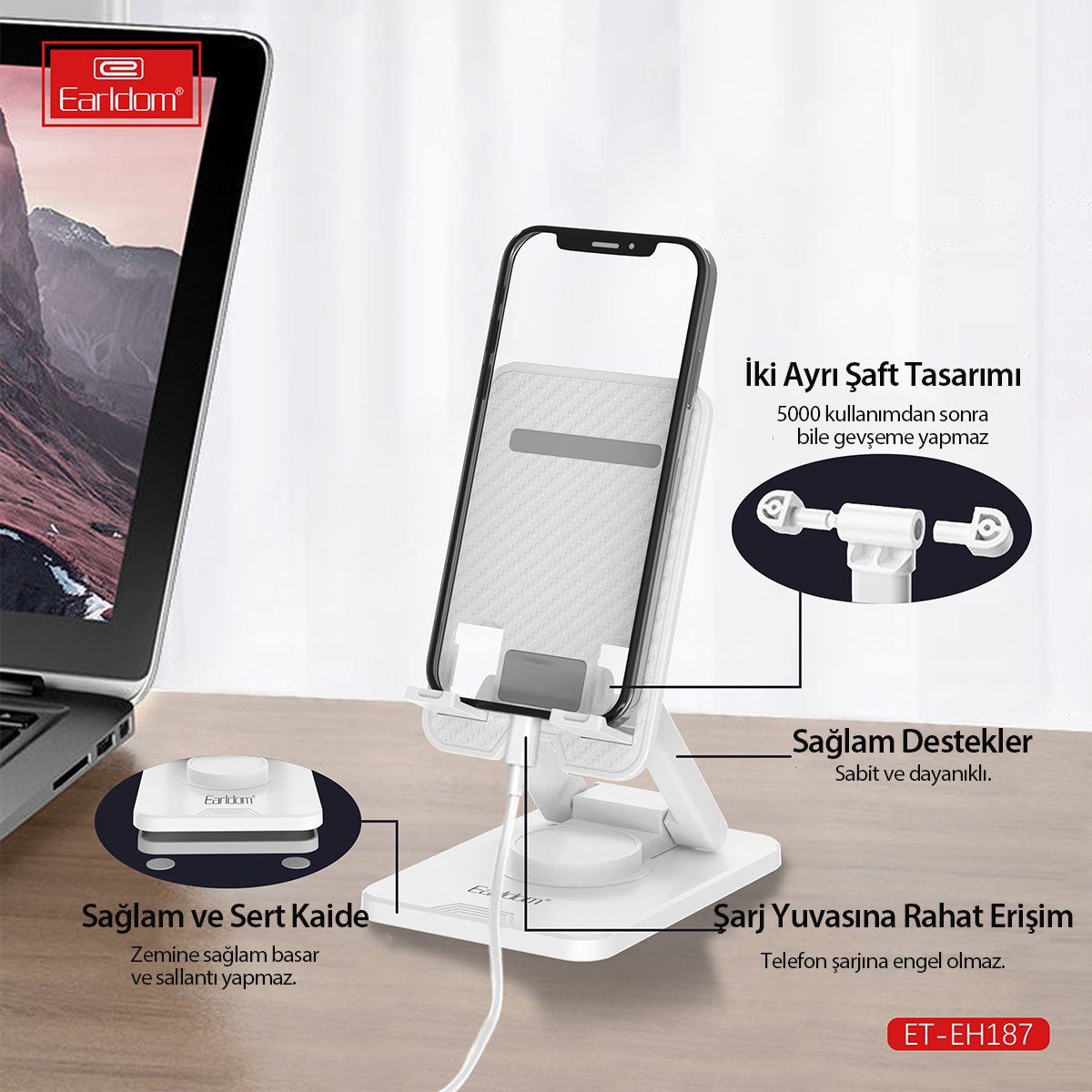 Bu tutucu, masada, tezgah üzerinde veya diğer yüzeylerde cihazınızı sabit tutmak için kullanışlıdır ve yükseklik ayar özelliği, cihazınızın görüş açısını optimize etmenize yardımcı olabilir.