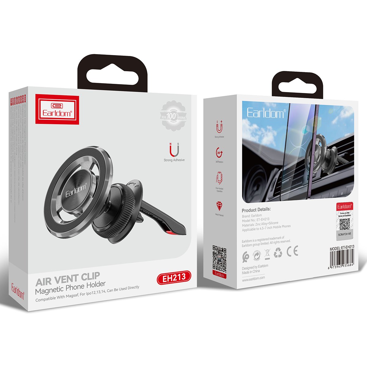 Earldom EH213, araç içi konforu artırmak için tasarlanmış, Magsafe uyumlu, güçlü manyetik yapısıyla cihazınızı güvenle sabitleyen bir araç tutucudur. Aracınızın ızgara klipsine kolayca takılarak pratik bir kullanım sunar ve telefonunuzu tek hareketle yerleştirip almanızı sağlar.