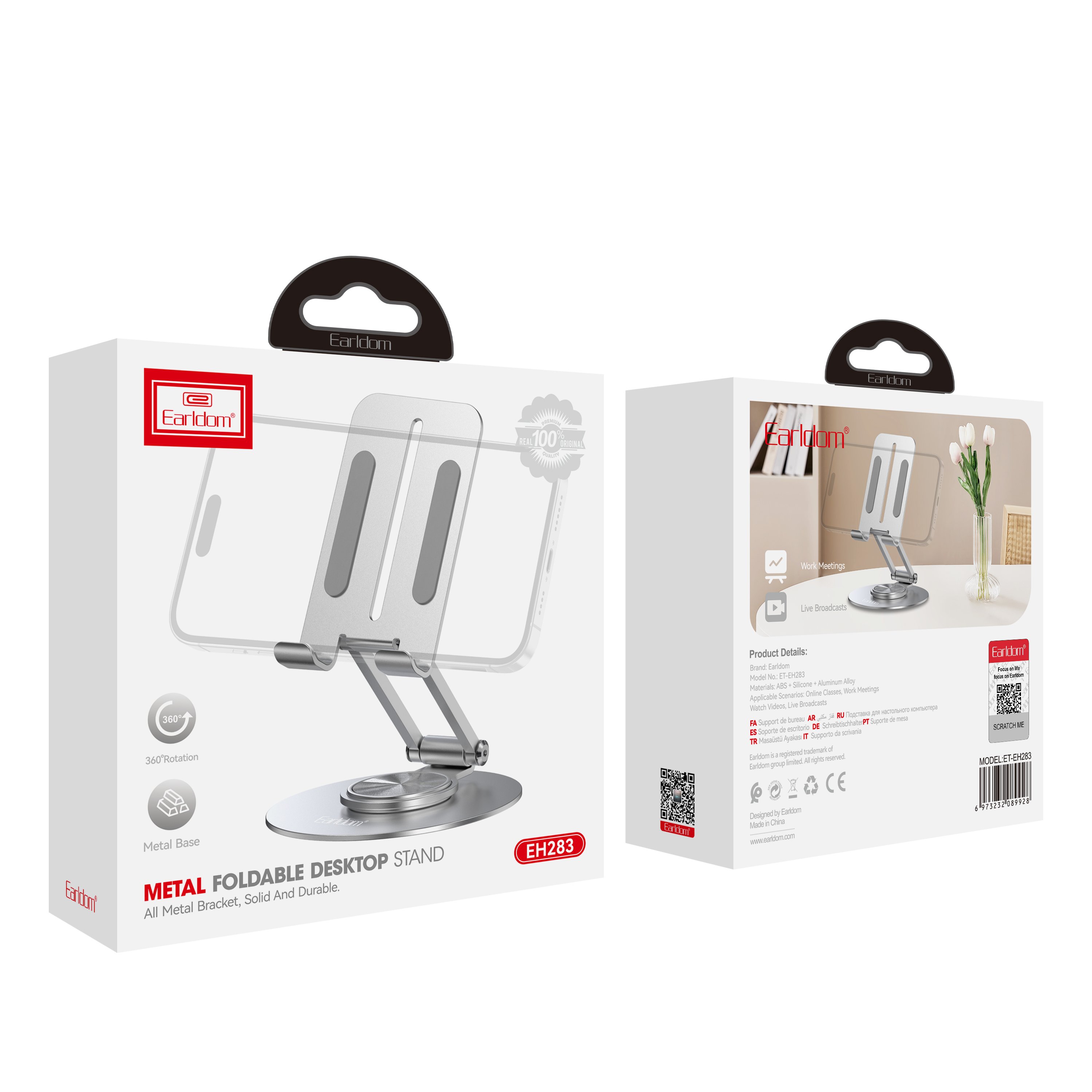 Earldom EH283, dayanıklı metal yapısı, 360 derece dönebilme özelliği ve katlanabilir yapısıyla masanızda telefon kullanımınızı kolaylaştıran pratik bir telefon tutucudur. Ergonomik tasarımı sayesinde uzun süreli kullanımlarda bile konfor sağlar ve telefonunuzu istediğiniz açıda sabitleyerek görüş açıları sunar.