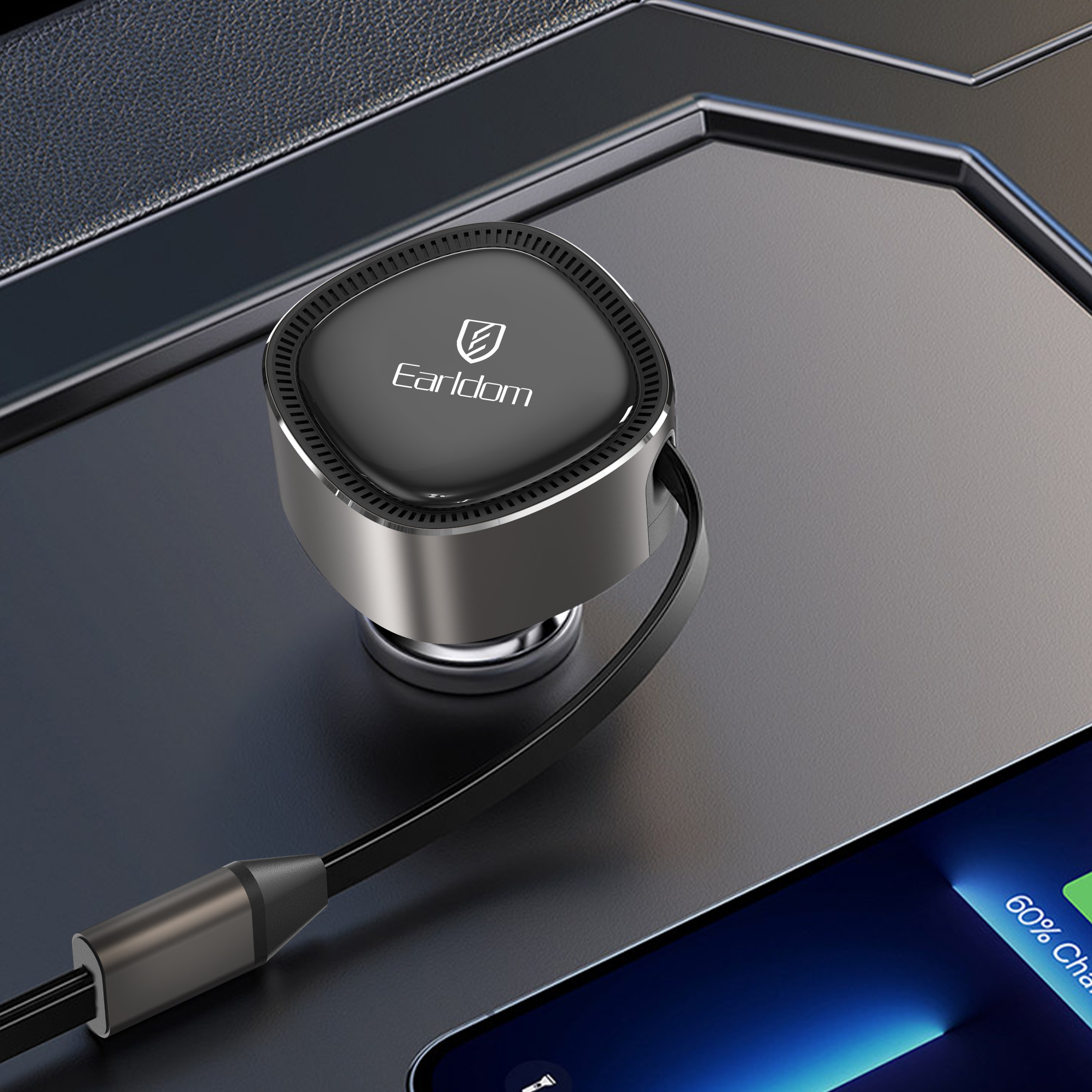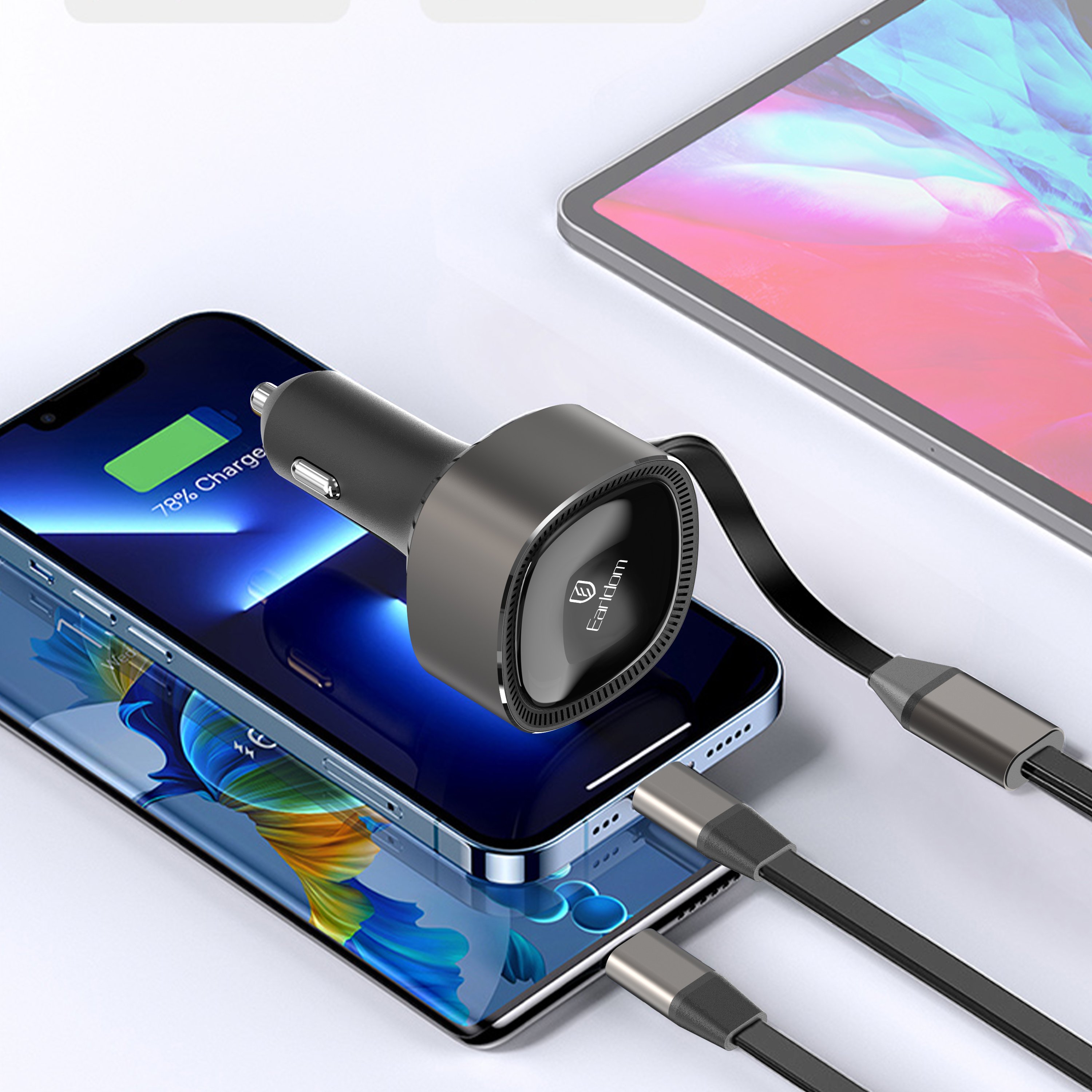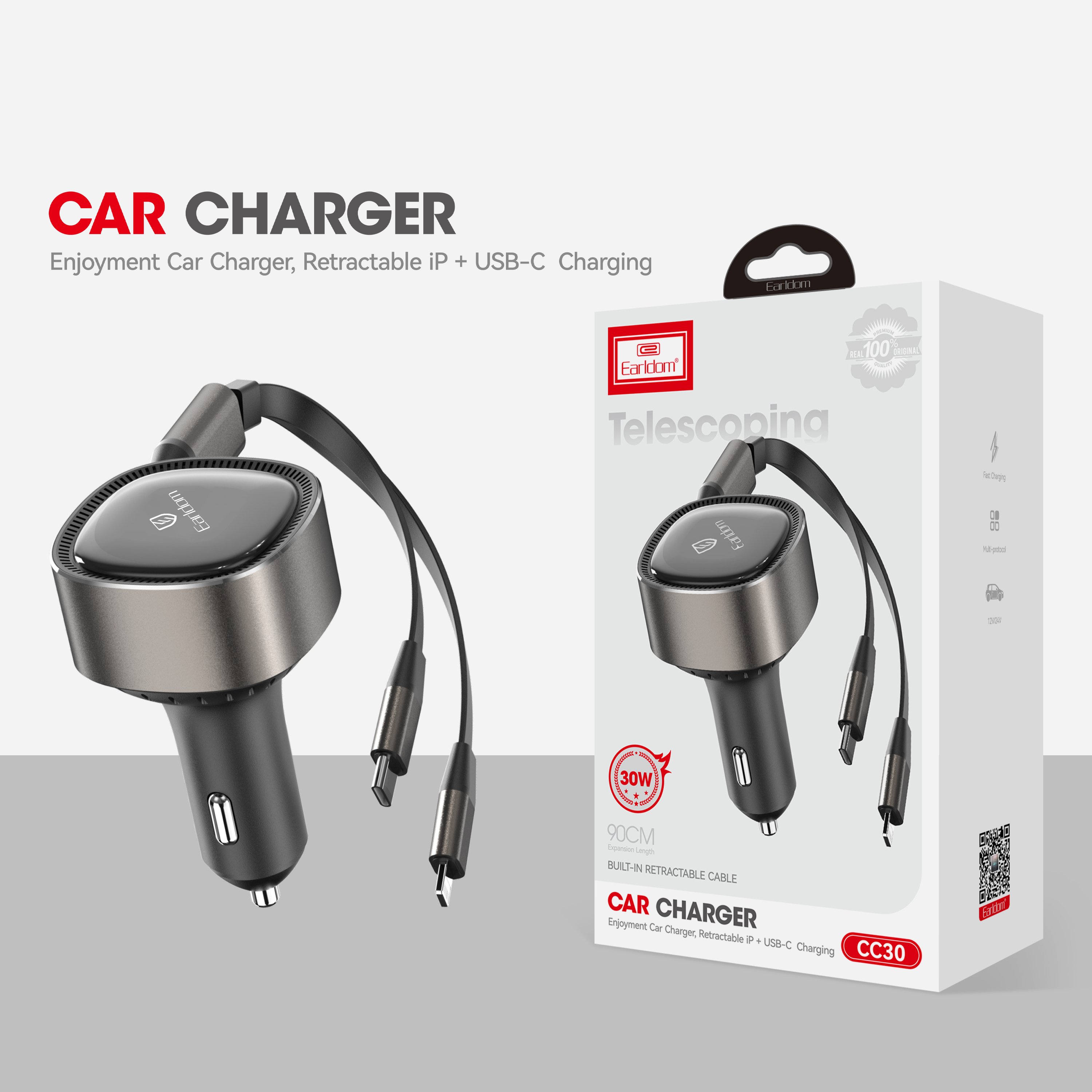 Earldom ES-CC30 1M 30W Dahili Type-C ve 1M 25W Dahili Lightning Kablo Çıkışlı PD Hızlı Araç Şarj