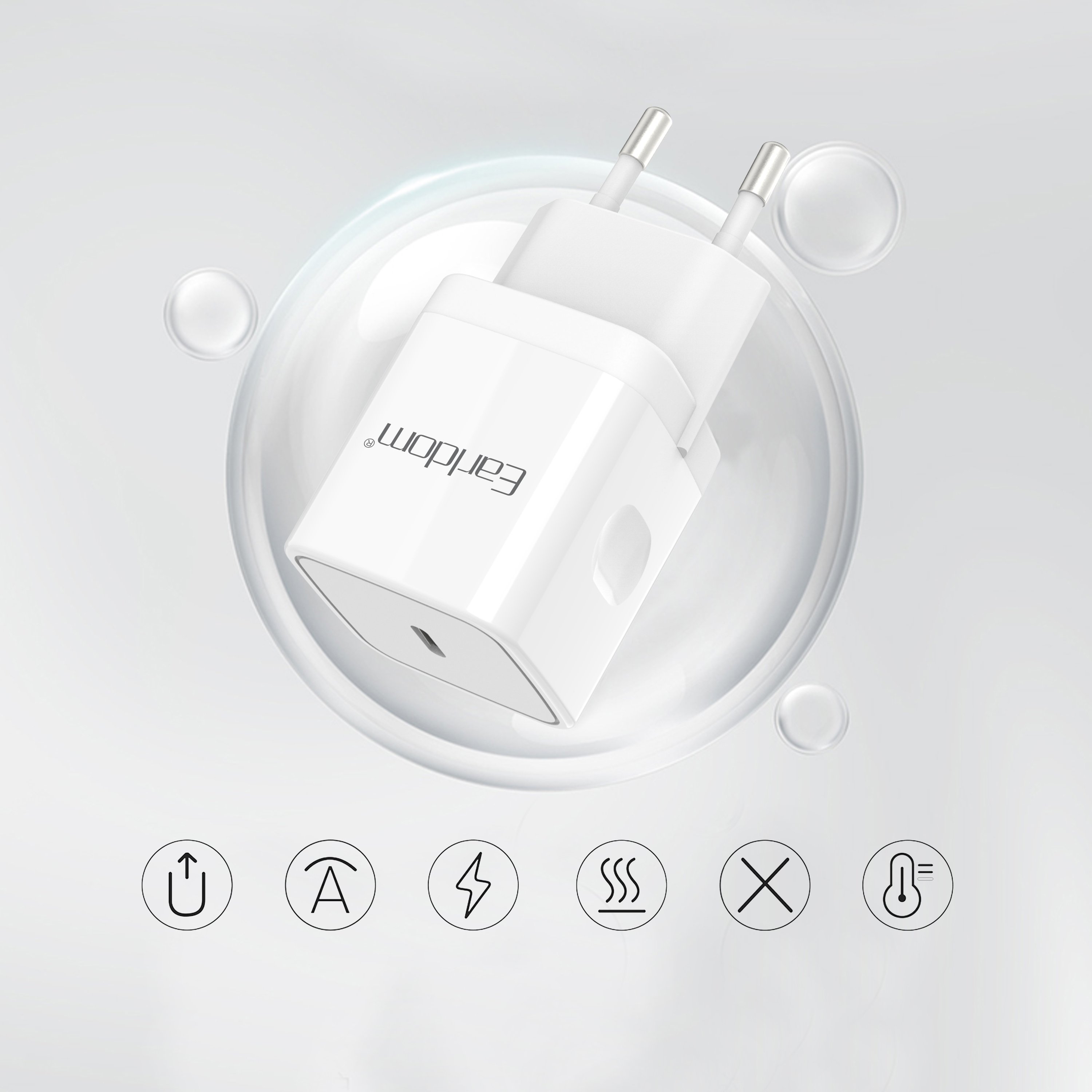 Earldom EU30C 20W Type-C Çıkışlı ve Type-C to Type-C Kablolu PD Hızlı Şarj Cihazı