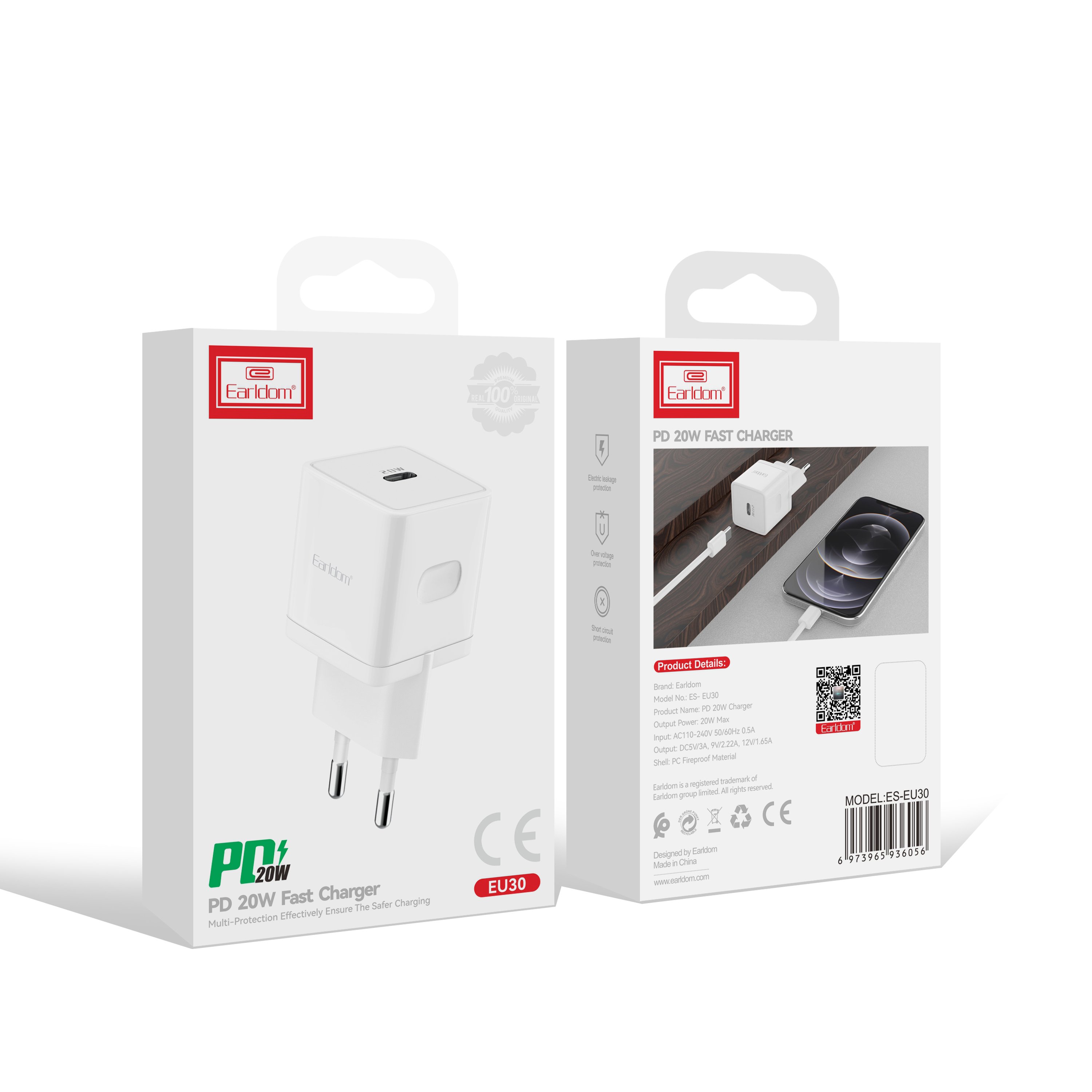 Earldom EU30i 20W Type-C Çıkışlı ve Type-C to Lightning Kablolu PD Hızlı Şarj Cihazı