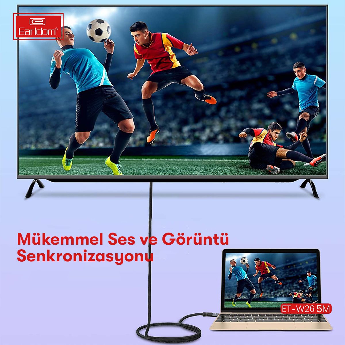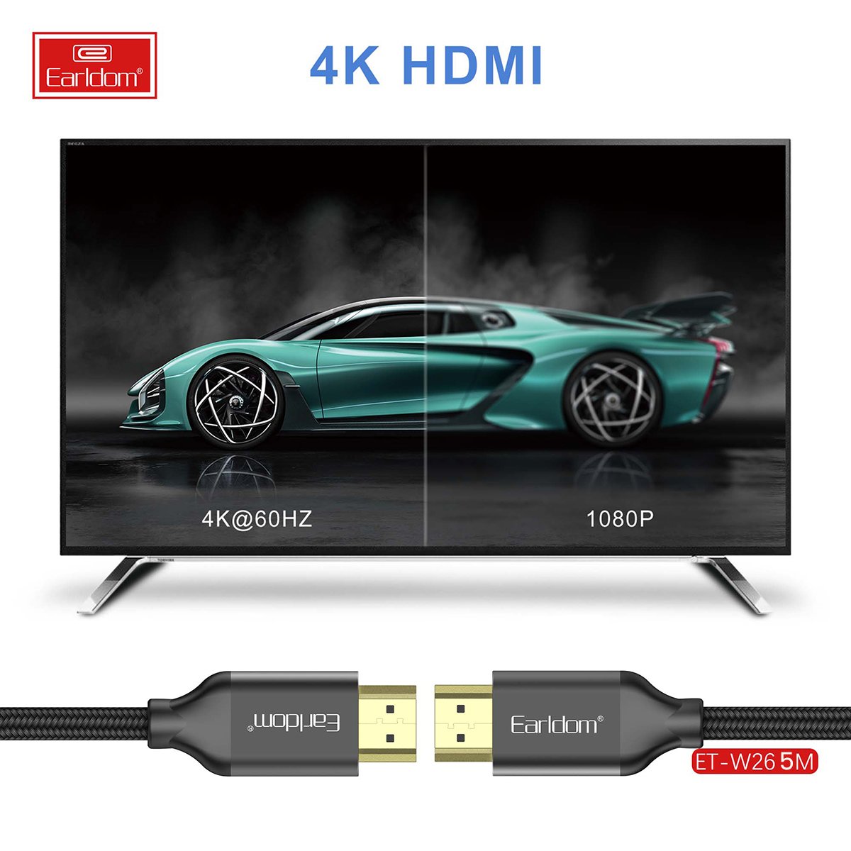 Earldom W26 5m 4K Altın Uçlu Hasır HDMI Kablo - Siyah