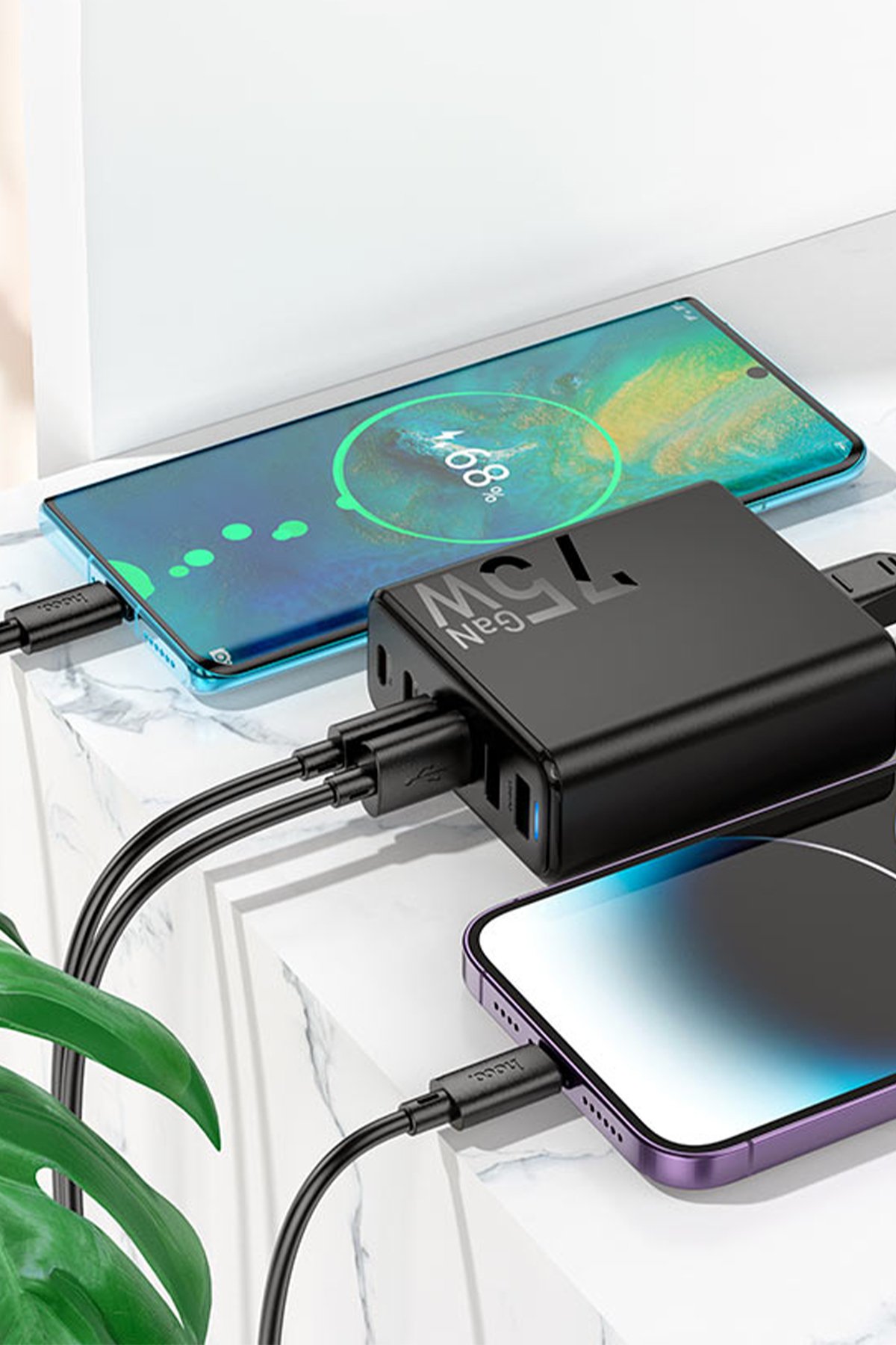 Yüksek Güç Kapasitesi: 75W gücü sayesinde, akıllı telefonlar, tabletler, dizüstü bilgisayarlar ve diğer cihazlarınızı hızlı ve etkili bir şekilde şarj edebilir. Aynı anda birden fazla cihazı şarj etme imkanı sunar.