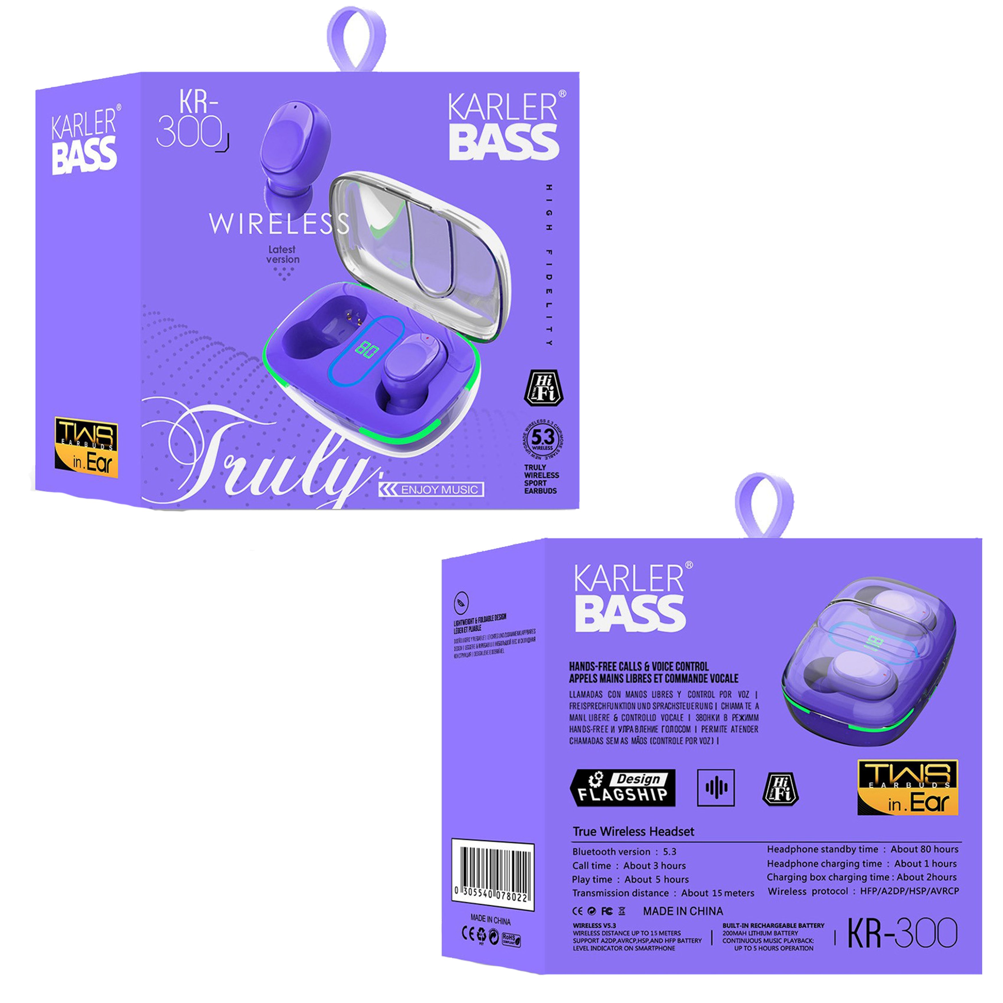 Karler Bass F08 Dijital Şarj Göstergeli TWS Bluetooth Kulaklık - Mor