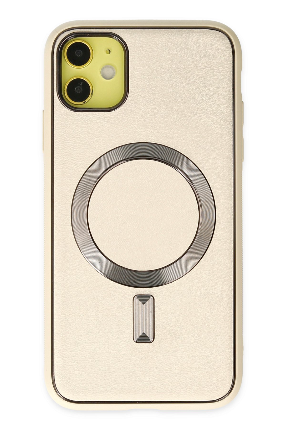 Newface iPhone 12 Kılıf Coco Deri Magneticsafe Silikon - Krem | Azunlar