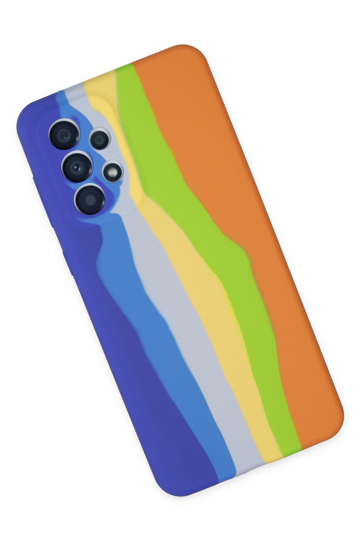 Newface Samsung Galaxy A73 5G Kılıf Ebruli Lansman Silikon - Mavi-Turuncu