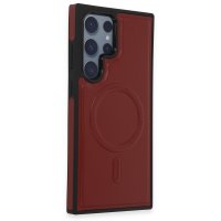 Newface Samsung Galaxy S22 Ultra Kılıf Ozzi Magsafe Deri Kapak - Kırmızı