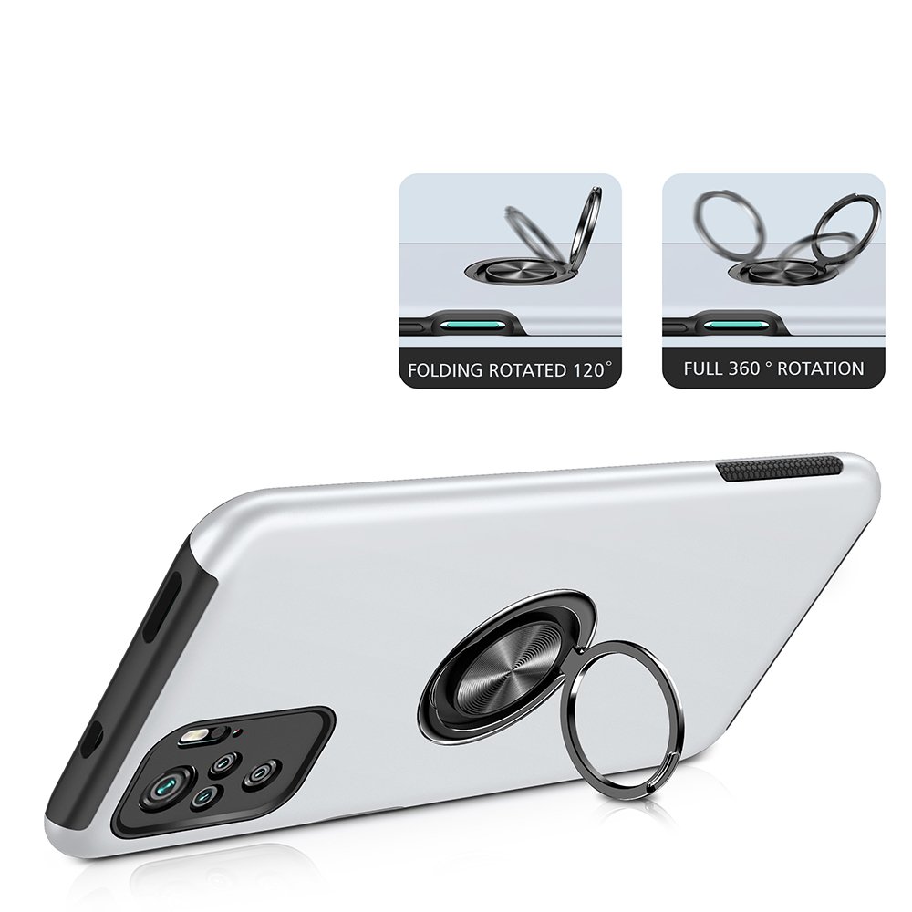 Newface Xiaomi Redmi Note 10S Kılıf Elit Yüzüklü Kapak - Gümüş