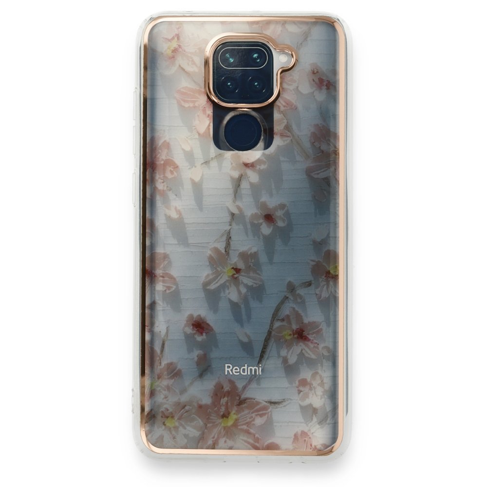 Newface Xiaomi Redmi Note 9 Kılıf Çiçekli Silikon - Gri