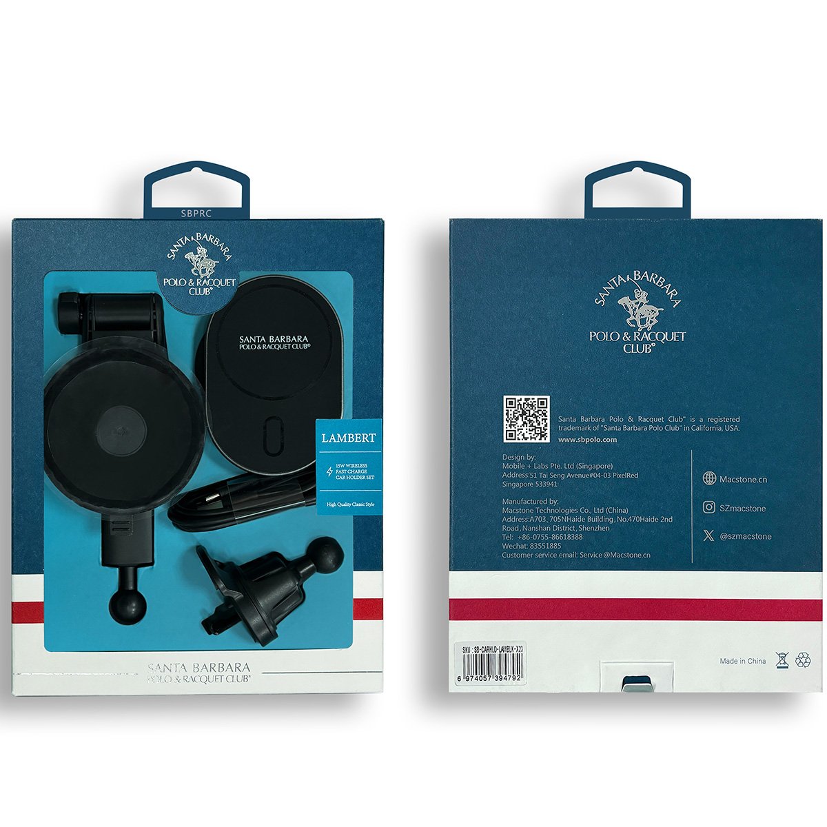 Santa Barbara Polo Racquet Club Lambert X23 2in1 Izgara Klipsli ve Vantuzlu Kablosuz Hızlı Şarj Magsafe Araç Tutucu