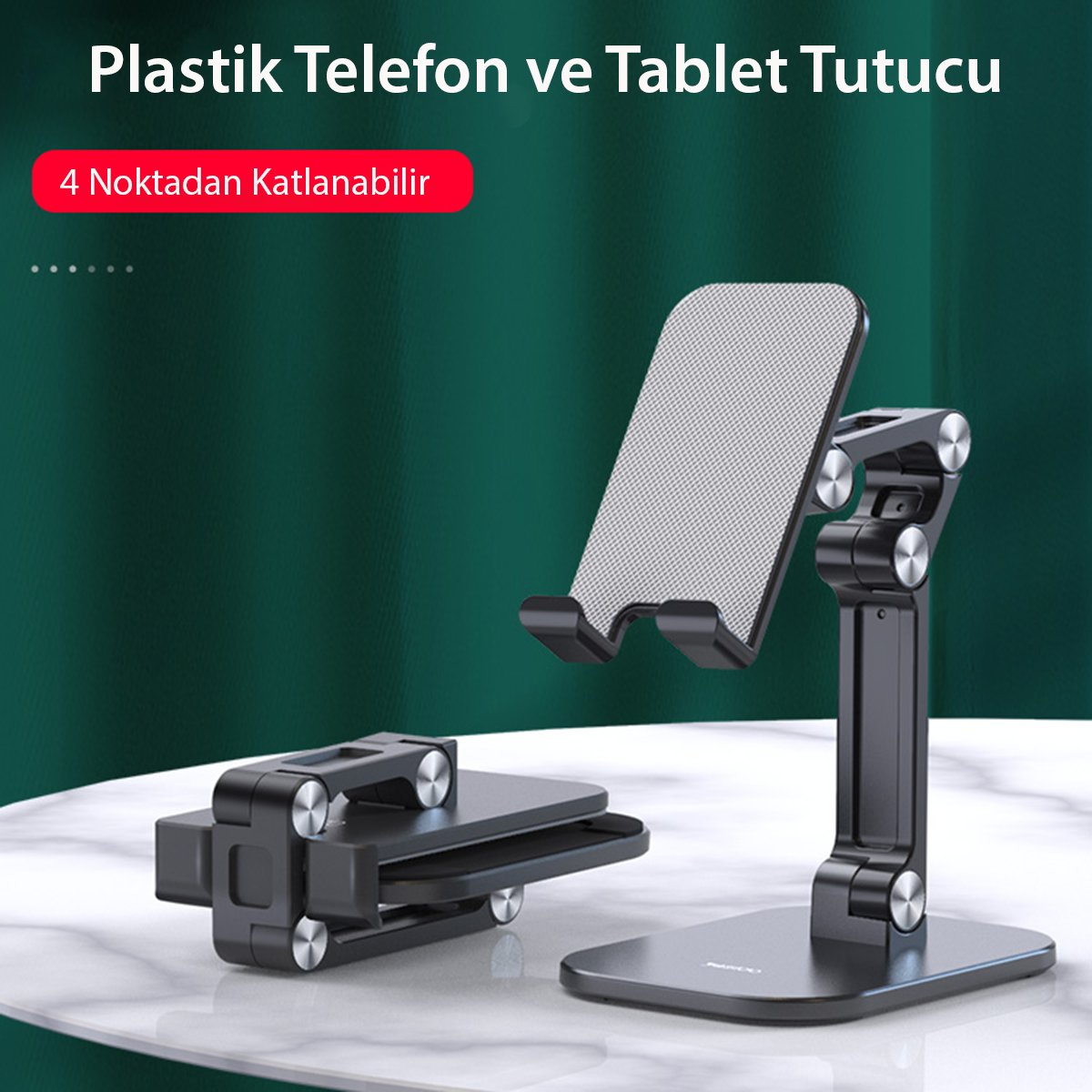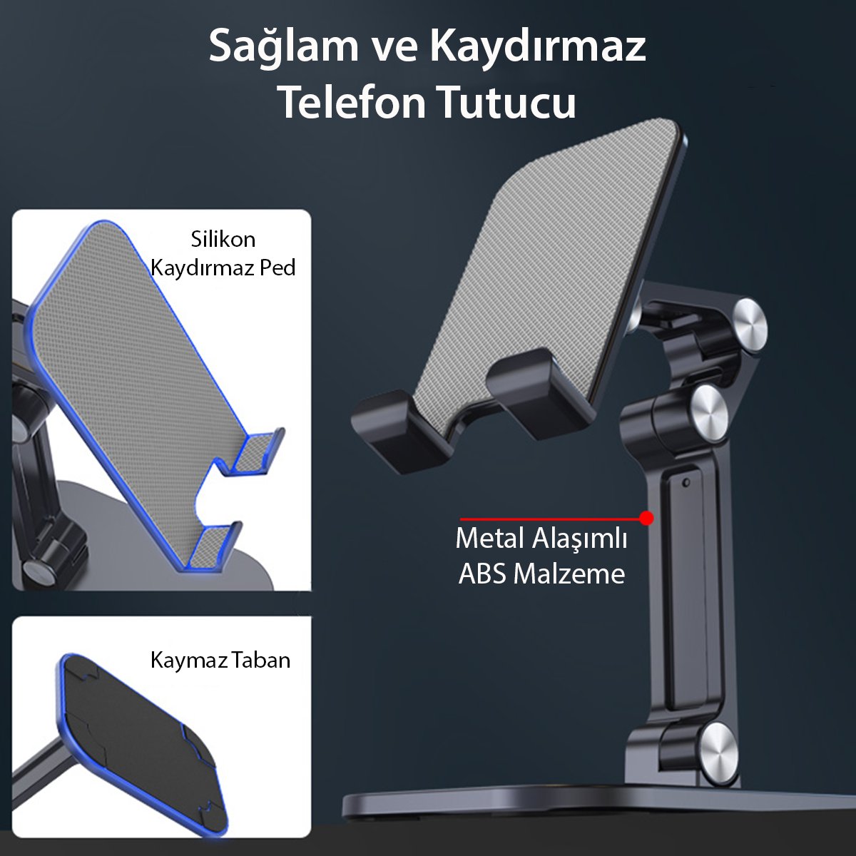 Standın alt kısmında bulunan kaymaz pedler, masa yüzeyinde kaymayı önler ve güvenli bir kullanım sağlar. Ayrıca, cihazınızın çizilmesini önleyen yumuşak pedler, cihazınızı güvenli bir şekilde destekler.