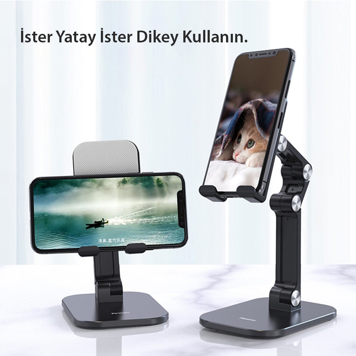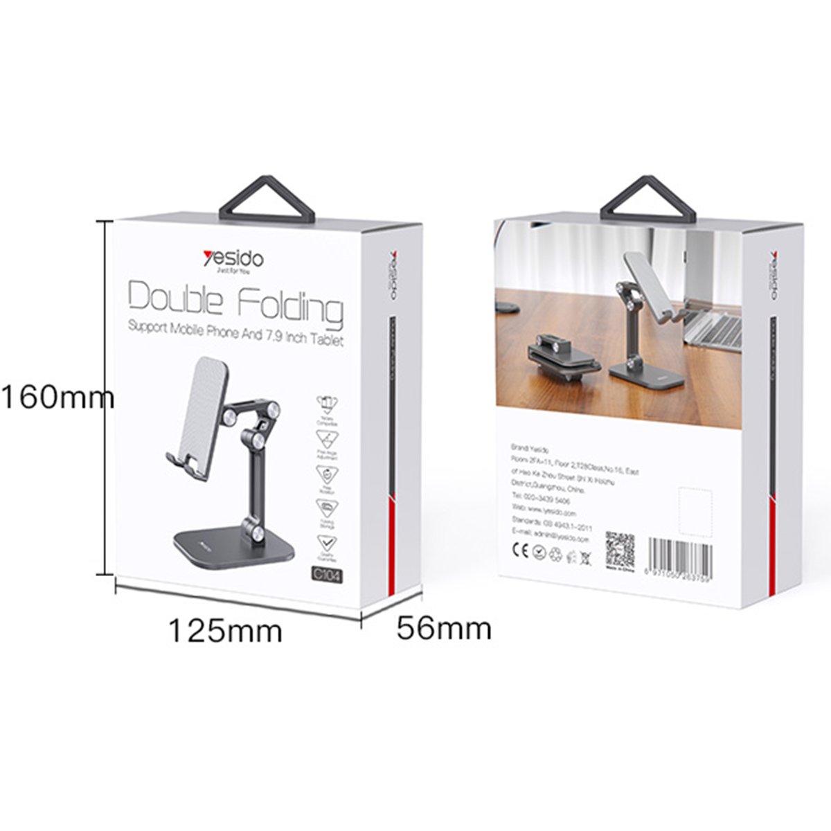 Yesido C104'ün kurulumu oldukça basittir. Kolayca açılır ve katlanır, böylece kullanım ve saklama işlemleri zahmetsizdir. Telefon veya tabletinizi standın üzerine yerleştirmek ve çıkarılmak son derece kolaydır.