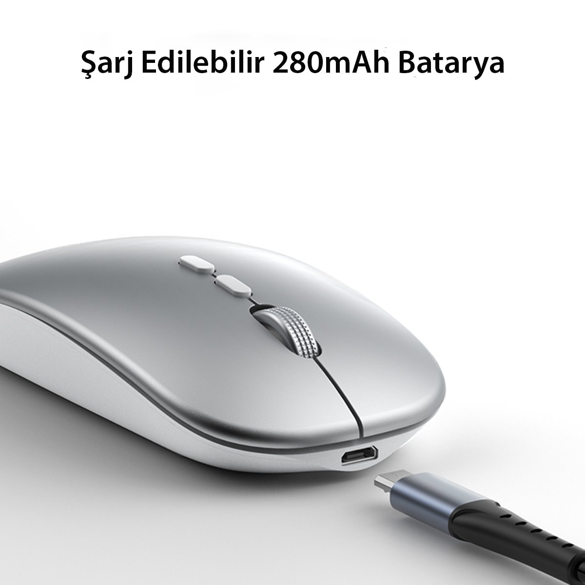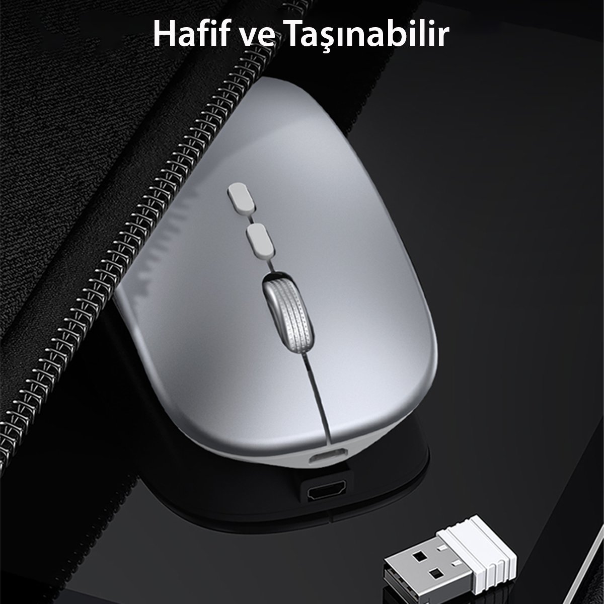Mouse'un gümüş rengi, modern ve profesyonel bir görünüm sunar. Hem evde hem de ofiste kullanım için şık bir aksesuardır.