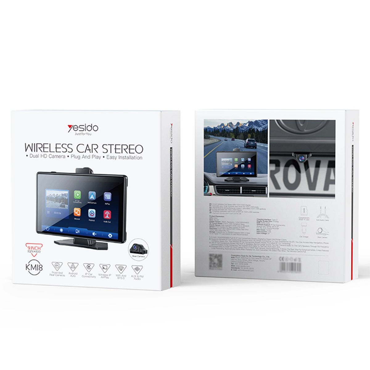 Yesido KM18, araç içi eğlence ve güvenlik sistemini geliştiren geniş ekranlı ve çok yönlü bir CarPlay cihazıdır. Bu cihaz, Apple CarPlay, Android Auto ve AirPlay desteği sunmanın yanı sıra ekstra olarak ön ve arka kameralar ile donatılmıştır, böylece daha güvenli bir sürüş deneyimi sağlar.