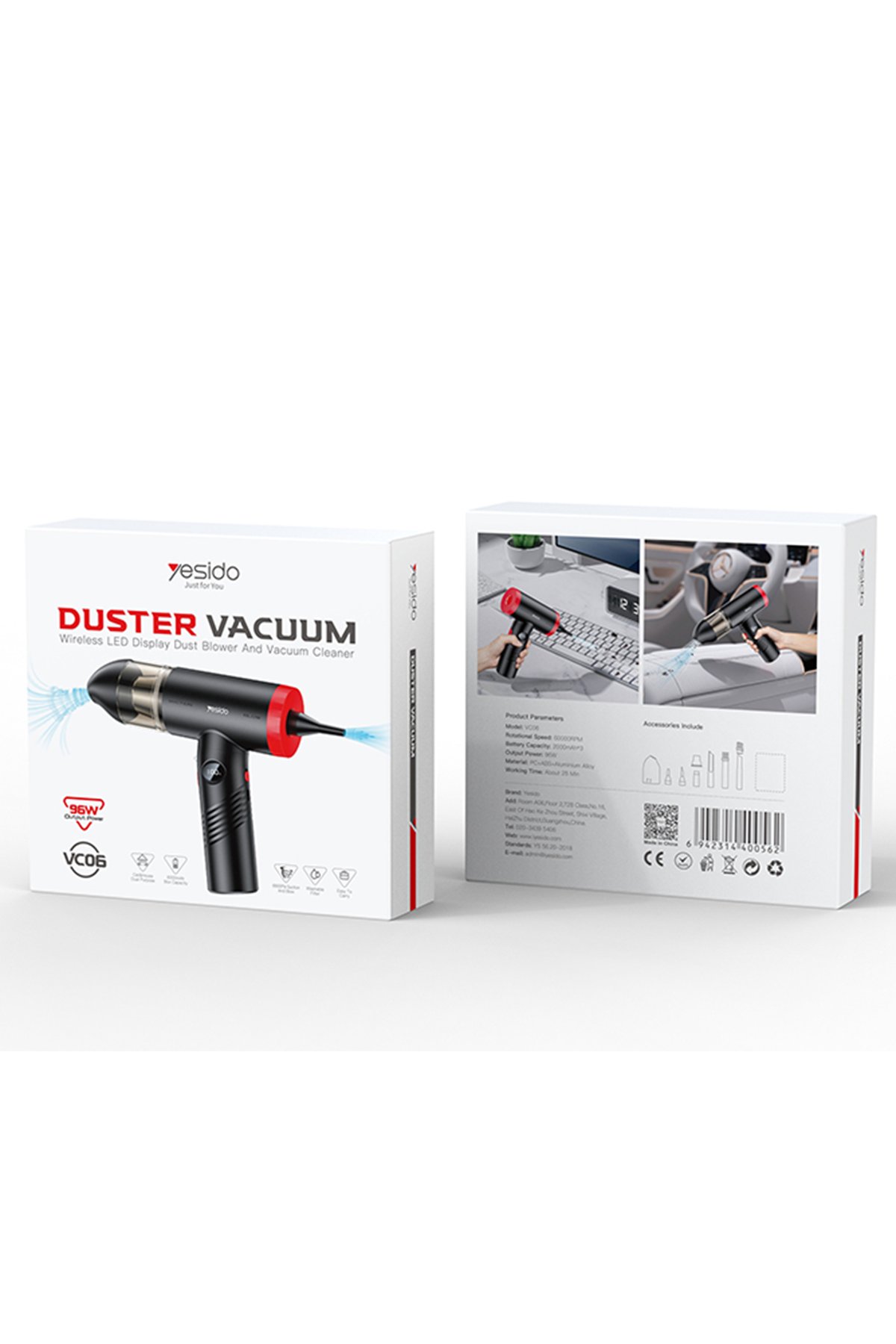 Yesido VC06 Çok Fonksiyonlu Dijital Göstergeli 6000 mAh Bataryalı Kablosuz Süpürge ve Hava Kompresörü